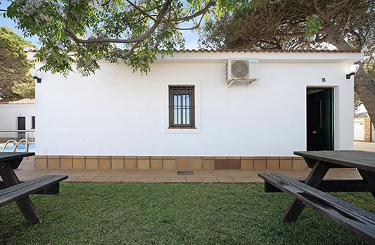 Apartamento ubicado en la Playa, en el pueblo de Chiclana a 0 metros de la playa. Consta de 2 habitaciones, un baño, vestidor, salón-cocina y jardín.